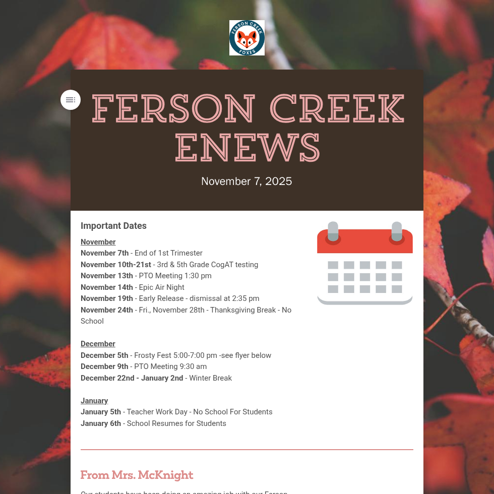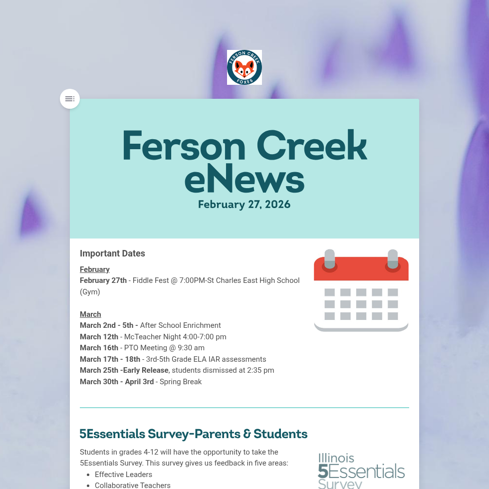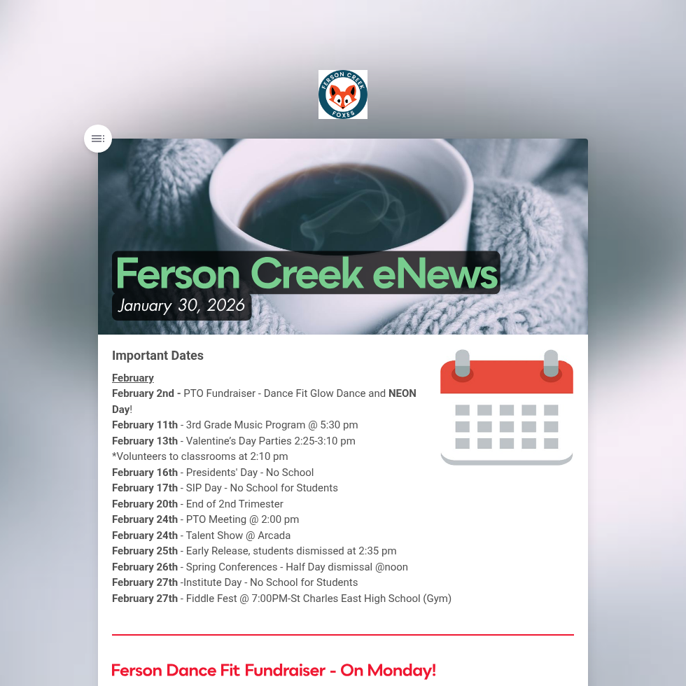 Newsletters are sent out via Finalsite